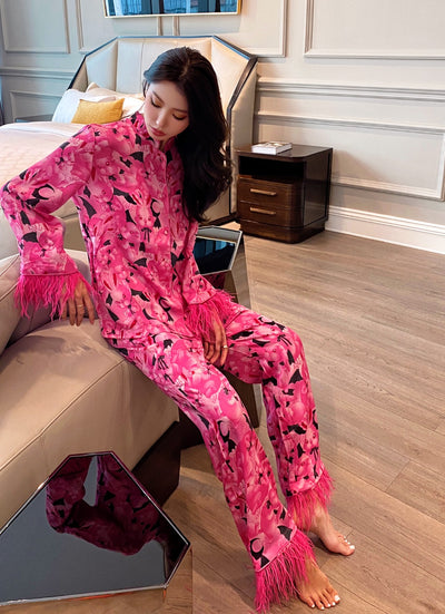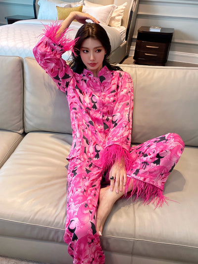 2: Cuffs adorned with luxurious and textured ostrich feathers, elegant and fashionable