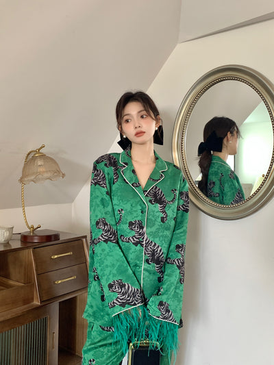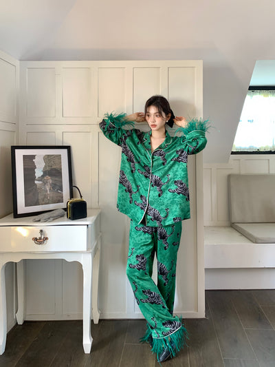 MUKZIN Crouching Dragon and Hidden Tiger with Ostrich Hair Pajama Shirts